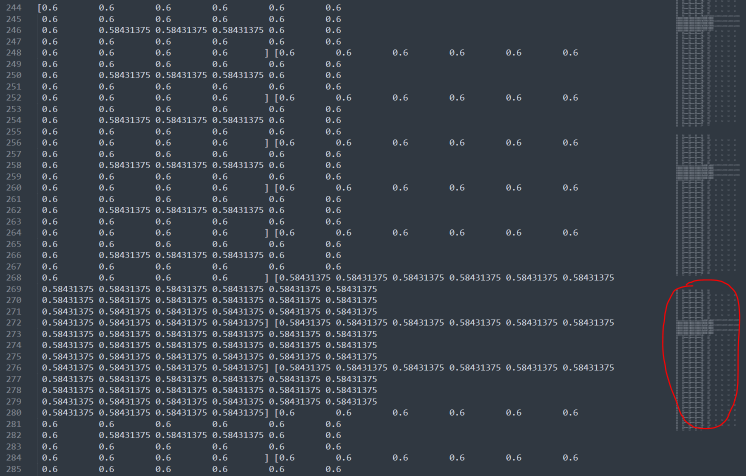 이쪽 부분만 0.58431375 로 값이 같은 것을 알 수 있다.